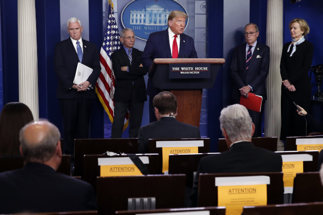 川普站在一度棄用的白宮簡報室講台上,在多名公衛專家陪同下回應記者問題,並向全國人民喊話。許多居家避疫的民眾焦慮看新聞,想了解最新疫情動態,不過川普的防疫簡報除了提供公衛官員的新消息,有時也令民眾感到困惑。