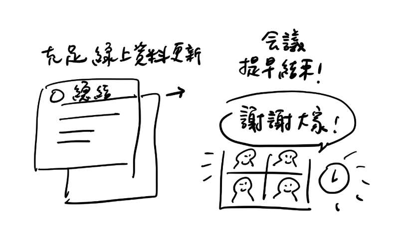 當原本預期,因為遠距可能會需要多抓一點討論時間的會議,可以在預期之前提早完成,這種明確的進化感,讓我覺得很滿足也感謝。