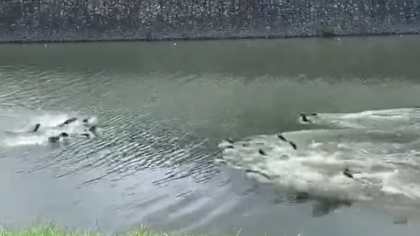 水獺們奇特的舉動吸引不少人駐足觀賞,事後網友也將影片分享出來,許多網友分紛紛留言笑說,「現在是上演無間道?」、「哪個學校的學生啦?沒事不要群聚」、「集體幹架是不對的行為XD」、「叫聲超可愛的哈哈哈哈」、「我邊看影片邊緊張...喔喔喔!要幹架了」、「莫名的覺得療癒~」。