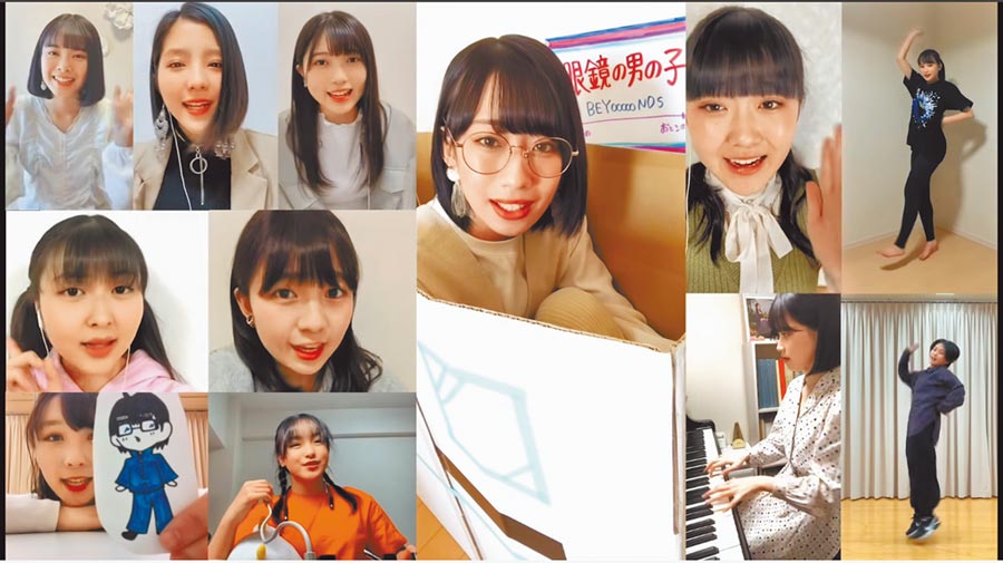 老舖偶像團體則各有新招,「早安家族」14日宣布5月底前共取消52場大小公演,年輕女孩們紛紛轉戰網路平台卻游刃有餘,平時罕見的說學逗唱個別上陣,猶如線上才藝發表會,一新粉絲耳目;將推出新曲〈維他命ME〉的「BEYOOOOONDS」12名團員各自在家合拍連線,坐紙箱內重現電車場景MV,畫面令人莞爾。