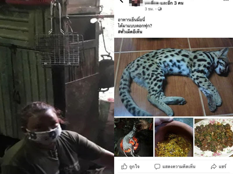 一名泰國女子在網上發布一隻死豹貓煮成食物的照片,其中包括豹貓被烤並煮成不同菜餚的照片,並加上標題:「今晚的晚餐」。由於豹貓在泰國是受保護的動物,而且自新冠肺炎爆發後,食野味更加引人關注,該女子遭網民強烈斥責,暫未知道該豹貓是她獵殺的,還是從買回來的,當地保育部門及警方已介入調查。