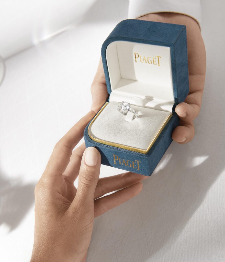 一段浪漫的追求,終將在一顆誠懇的心下,許諾這美麗的求婚誓言。而這令人怦然心動的時刻,伯爵則將這份熱情轉化為鑽戒作品,成就了Passion單鑽婚戒。作為對愛情的禮讚,PIAGET Passion鑽戒象徵著兩情長久、此生不渝的美好寓含,其戒台至戒圈完美的的圓潤線條,襯托著圓形明亮式切割美鑽的耀眼。而伯爵珠寶工妨巧妙地將鑽戒底座以大幅鏤空的方式讓進光程度達到最高,兼而所有的伯爵作品都僅能使用F-Color和VVS2淨度以上的標準下,每一枚伯爵鑽戒,皆揮灑著令人難以忘卻的鋒芒。另一款以美鑽1克拉以上為主石的PIAGET Celebration單鑽戒指,則透過如雙手懷托的包鑲戒座設計,呈現出對於愛情的呵護。鋪鑲於戒圈的美鑽則如綿延無絕的愛意,仿若在繁星點點的銀河之下,隨星光熠熠所盛放的澄淨透明的美鑽光芒,恆久流傳。