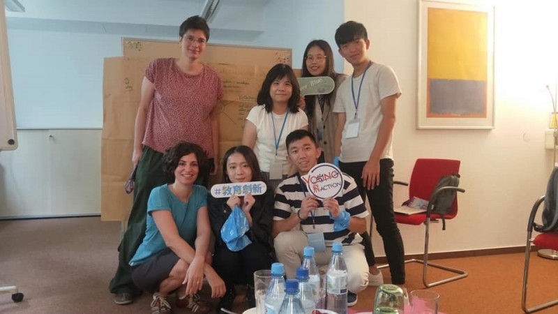 教育部青年發展署推動「Young飛全球行動計畫」,108一組青年團隊董氏基金會合作「Overblue跨越憂鬱團隊」,諮詢德國大學生輔導機構studierendenWERK BERLIN的作法。(青年署提供)