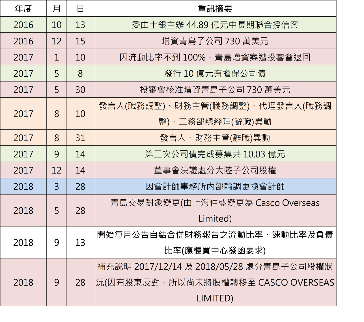 事實上,為擴大營運規模、充實營運資金,2016年10月13日三圓董事會通過,擬委由土銀主辦、辦理44.89億元聯貸案;同年12月,三圓董事會決議增資青島子公司730萬美元,但因流動比例不足,該增資案2017年元月遭投審會退回。