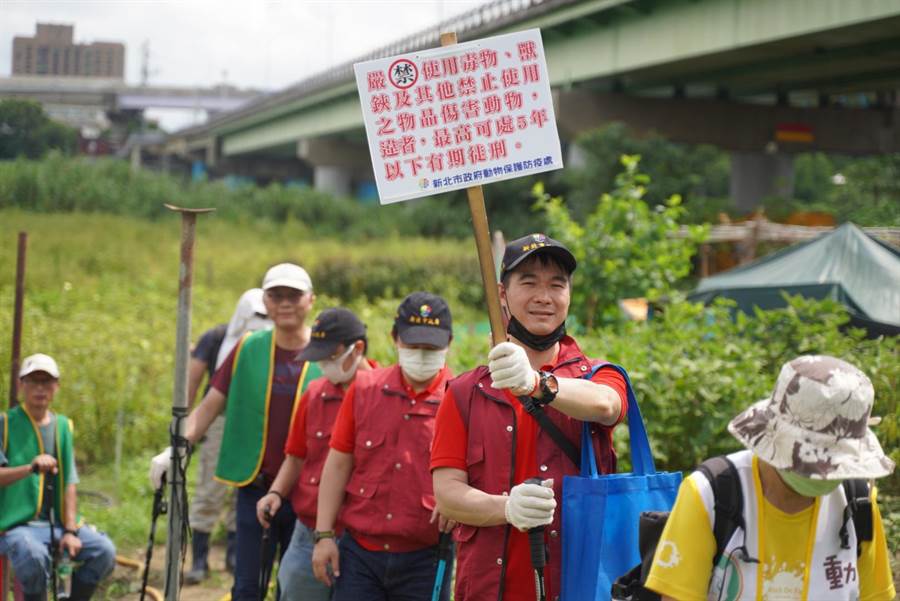 新北市動保處今(29日)上午會同9個動保團體及中華民國山岳協會等單位在永和河濱公園舉辦「獸鋏雷霆行動大會師」,共有105人參與,將針對過去1年7個通報熱點同步進行清山行動,盼藉此減少犬貓、野生動物遭獸鋏或山豬吊傷害案件