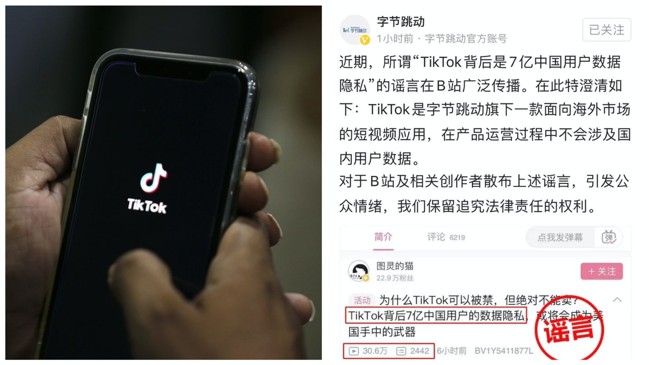 內媒《澎湃新聞》報道指,TikTok的母公司字節跳動今天(9日)在其今日頭條官方帳號上發布消息稱,近期所謂「TikTok背後是7億中國用戶數據隱私」的謠言在B站(嗶哩嗶哩彈幕網)廣泛傳播。字節跳動澄清,TikTok是字節跳動旗下一款面向海外市場的短片程式,在產品運營過程中不會涉及國內用戶數據。