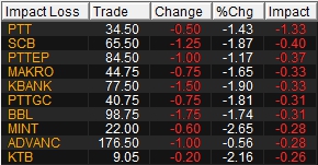 10 หุ้นกดดัชนีเช้านี้
