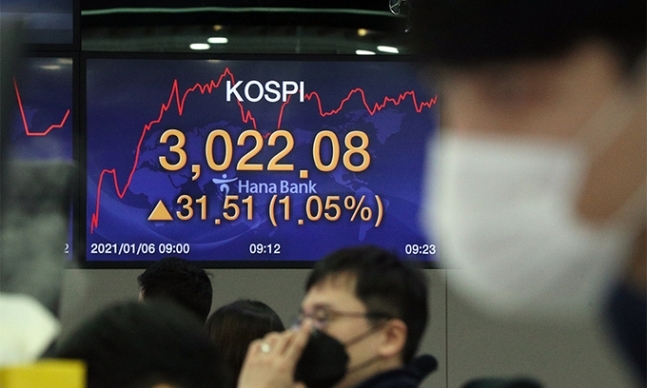 코스피 지수가 3000을 돌파한 가운데 돈을 빌려 투자하는 ‘빚투’가 폭증한 것으로 확인됐다. 돈을 있는 대로 끌어모아 집을 사는 ‘영끌’도 증가한 것으로 분석됐다.