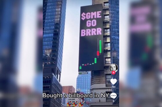 | 뉴욕 맨해튼 타임스퀘어 전광판에 게재된 게임스탑 관련 광고. (뉴욕포스트 갈무리) © 뉴스1 |