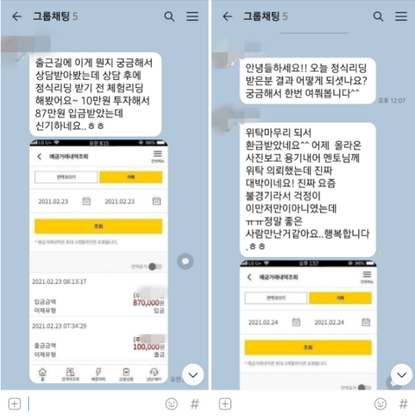 A씨는 지난 2월 ‘투자금 비례 높은 수익률’이라는 제목의 카카오톡 광고 메시지를 받았다. 그는 호기심에 광고 메시지를 클릭하고 카카오톡 방에 입장하자, 운영자인 B씨가 무료로 가상화폐 수익을 내주겠다며 10만원만 투자해보라고 권유했다고 전했다.