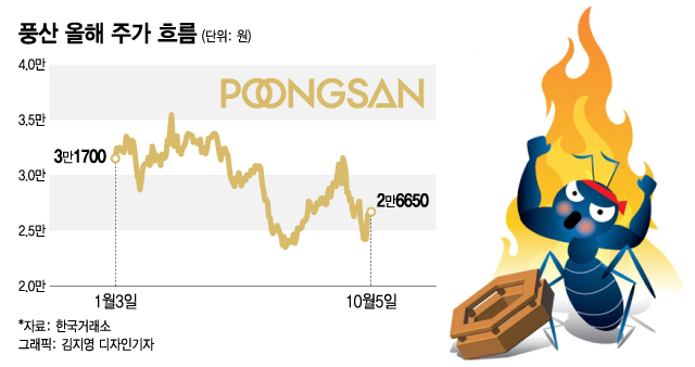 풍산은 지난달 7일 방산부문을 '풍산디펜스'(가칭)로 물적분할하겠다고 밝히며 분할결정을 공식화했다. 그러자 소액주주들이 곧바로 반발했다. 통상 모회사에서 핵심 사업부를 분리하는 물적분할을 단행하면 기존 회사의 경쟁력이 그만큼 축소되면서 주가가 급락하기 때문이다.